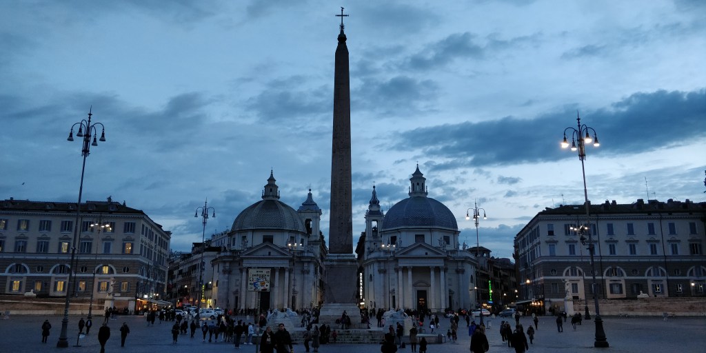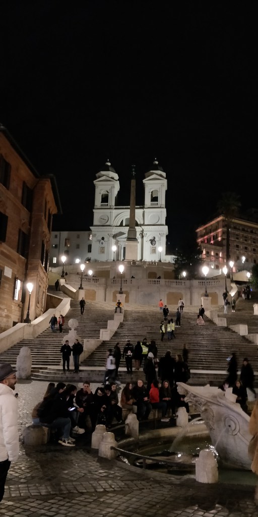 Por la tarde paseo por una Roma de cielos encapotados y conbajas temperaturas ycon muy pocos turistas en sus calles. Esta es la época ideal para venir de visita. Por cierto, sorprende ver vacías las escaleras en la Plaza de España. El ayuntamiento de Roma prohibió sentarse en ellas desde el pasado verano y, ciertamente, está dándolo todo para que la medida se cumpla. La imagen que acompaña este text de de ayer pocos minutosdespués de las seis de la tarde. Como puede apreciarse, había más vigilantes y policías que turistas en los escalones.