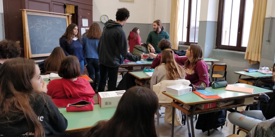 Prudenzi es un profeosr muy calmado, trnasmite un gran dominio de sus asignaturas (Filosofía e Historia, aquí la Geografía forma parte de otro negociado). Los alumnos intervienen con fracuencia sin que por ello se pieda el hilo de la lección, ya que el resto no molesta hablando en voz alta o haciendo ruidos. Esto no quiere decir que la clase esté muerta, que los alumnos sean muebles, nada más alejado de la realidad. Pongamos las cosas claras, el alumnado sabe para qué está allí y no pierde el tiempo en tonterías.