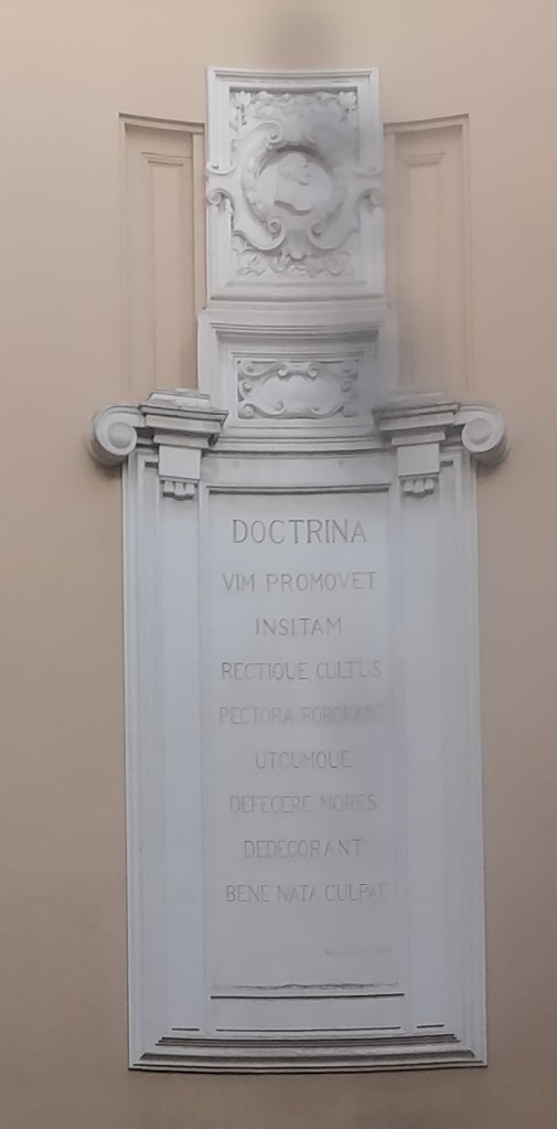 En fin, este post se está alargando en exceso y no quiero entrar en las profundidades (abisales) del debate sobre la educación en España; dejémoslo para otro siglo. Sí quiero despedirme, en cambio, con un par de fotos sobre un mensaje que adorna una pared del Mamiani y que, aunque antiguo (mucho, de hecho, la escribió Horacio), nos recuerda la importancia de la educación.