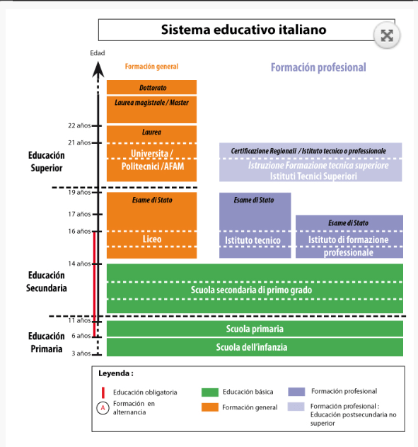 El sistema educativo italiano tiene una estructura bastante diferente al español, tanto es así que los estudiantes del último curso de la Enseñanza Secundaria acceden a la Universidad con 19 años, uno más que en España.