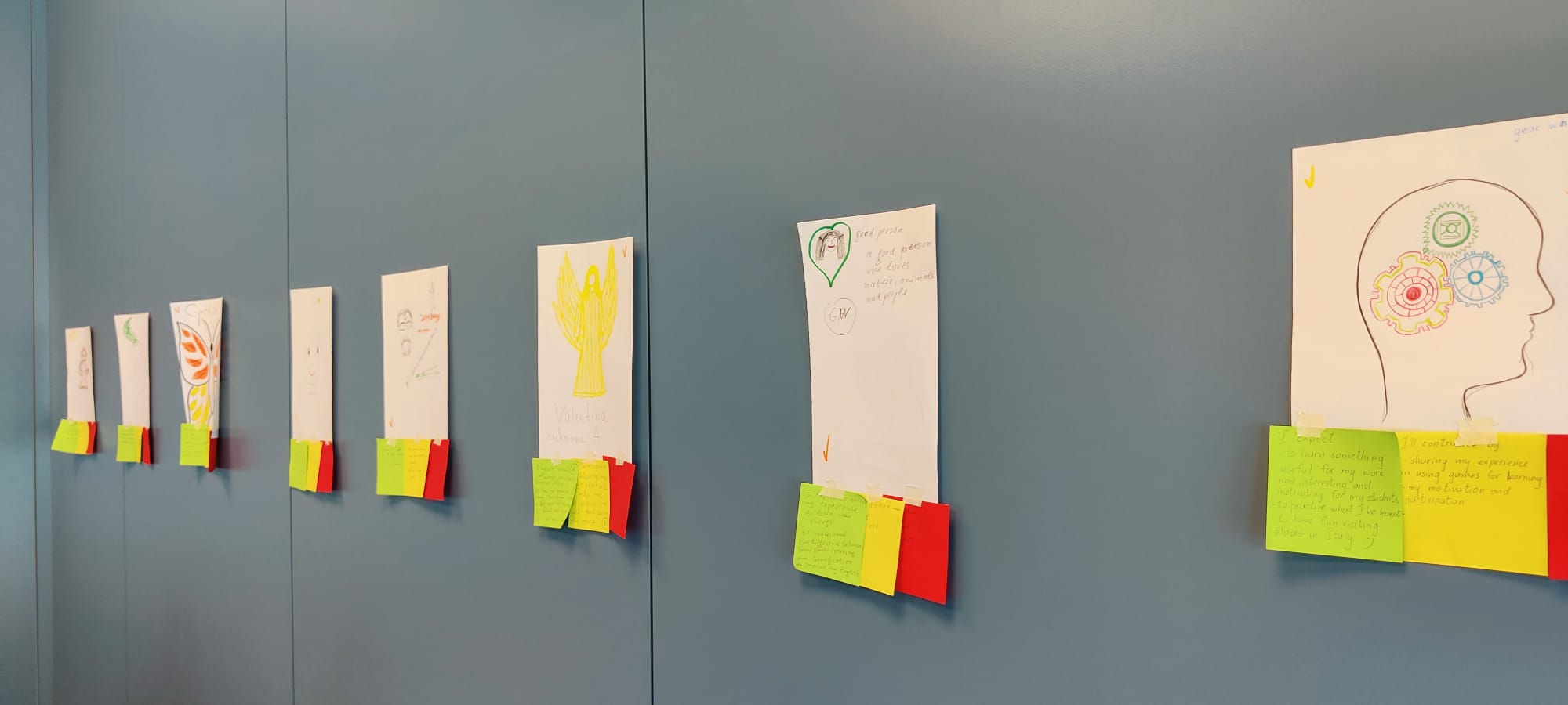Avatares, alias, insignias… La propia estructura del curso se plantea como un juego de diferentes niveles. El primer reto consistía en construir una torre los más elevada y sólida posible, usando la menos cantidad de materiales posibles y en la menor cantidad de tiempo: reto superado por el equipo hispano-búlgaro gracias a nuestro tejado «a dos aguas», que hizo que nos elevásemos dos centímetros por encima del metro de altura que consiguió el equipo luso-rumano (aquí hemos venido a aprender, pero si ganamos en los retos pues mucho mejor).