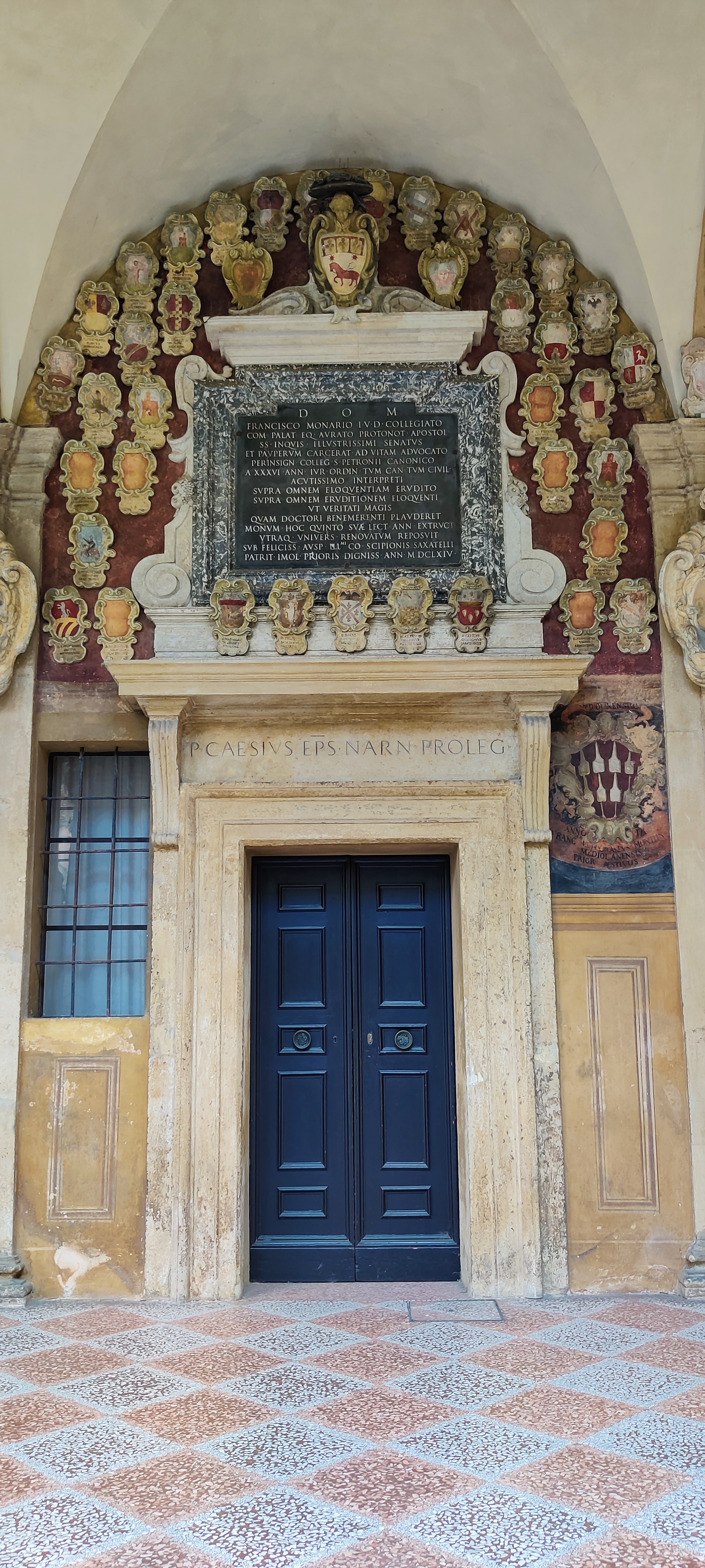 Casi sin tiempo para verlo conseguimos acceder al patio del Archiginnasio, el edificio más antiguo de la universidad más antigua de Europa.
