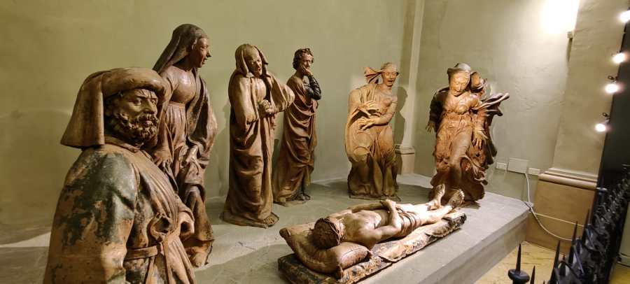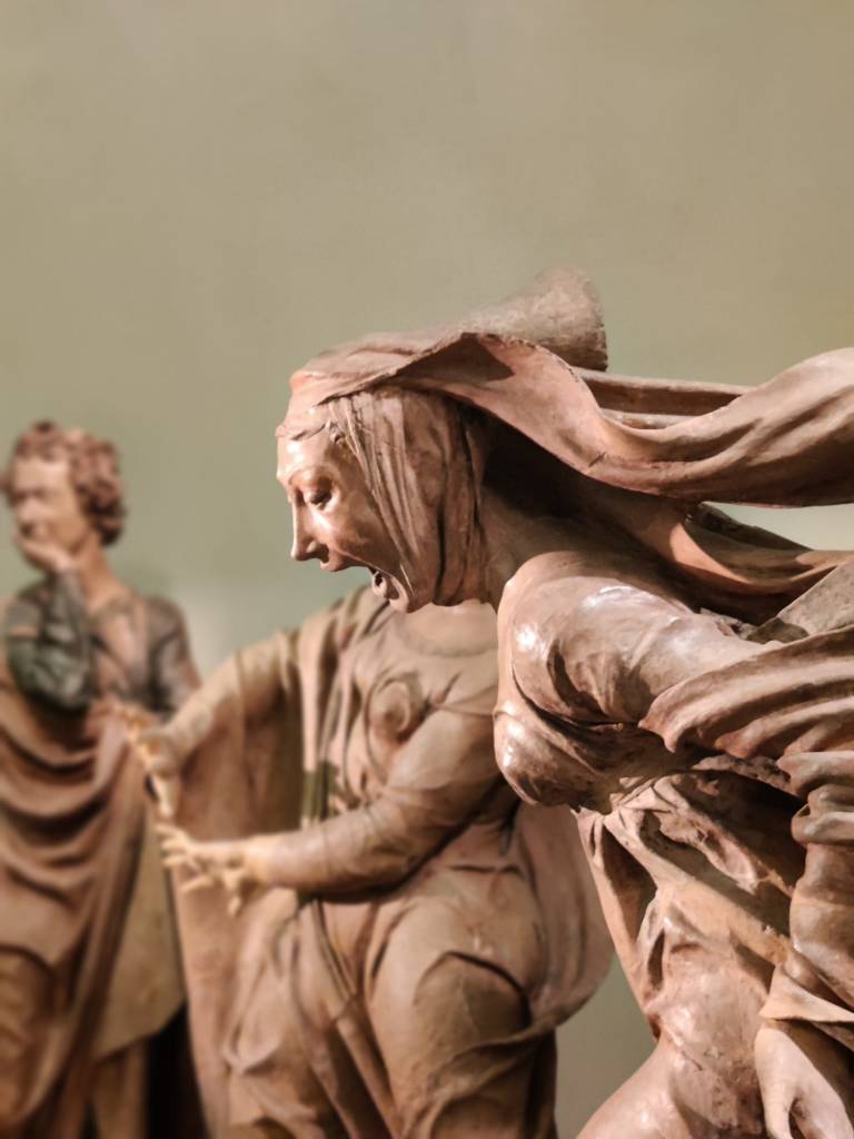 Este maravilloso conjunto escultórico compuesto por Nicolò dell’Arca entre 1463 y 1490, me dio mucho que pensar y no pude evitar relacionar la escena del lamento por el Cristo muerto con el lamento de decenas de padres, madres, hijos y toda clase de familiares y amigos por los asesinados en aquella trágica maña de 41 años atrás, a algunos centenares de metros de donde se exponen estas esculturas.