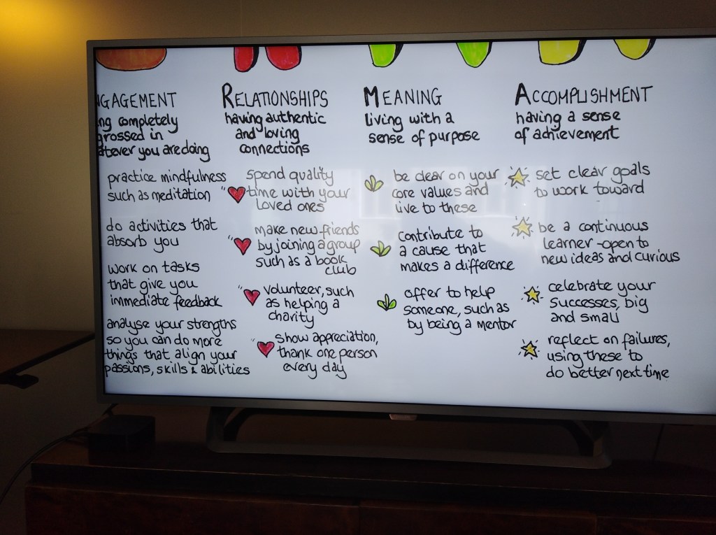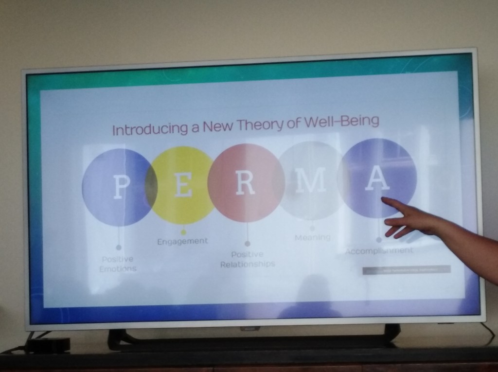Por la tarde, trabajando en el curso sobre habilidades y valores positivos.