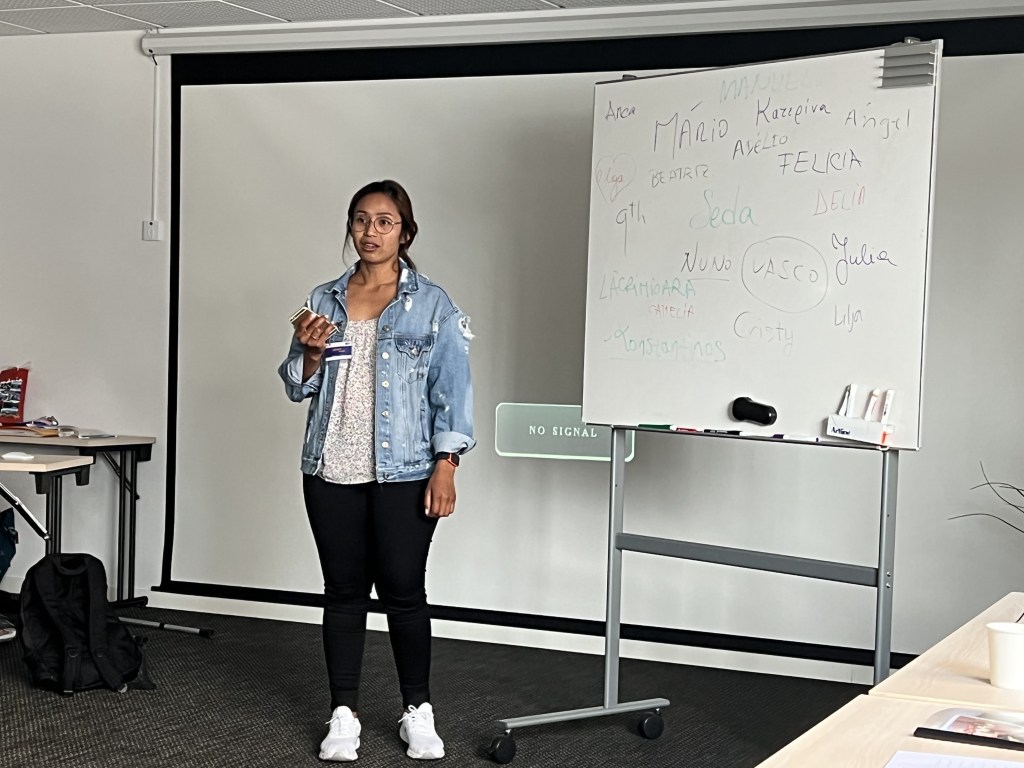Después, para ir conociéndonos personalmente, debíamos salir a la pizarra, escribir nuestro nombre de pila y explicar las razones por las que nos llamamos así. Ha sido muy divertido oír las distintas historias, algunas bien pintorescas, sobre nuestros nombres. Tras terminar de escribir e indicar la razón de nuestros nombres, Felicia, la profesora, iba diciendo, al azar, algunas de las cosas que habíamos explicado, con el fin de que el resto identificase a esa persona.