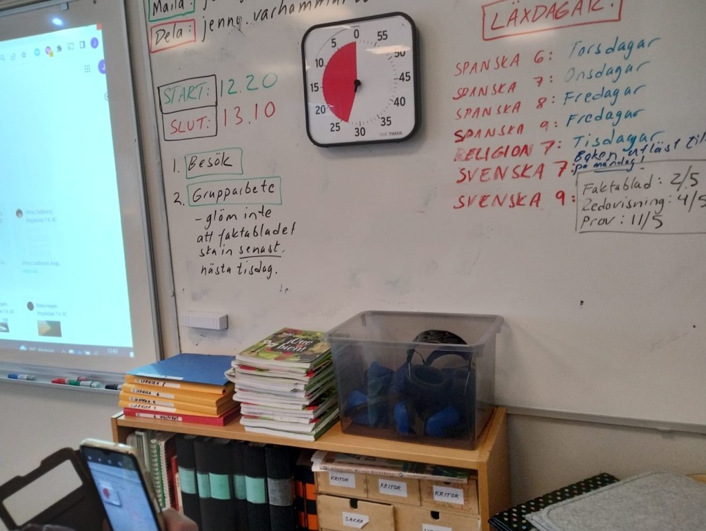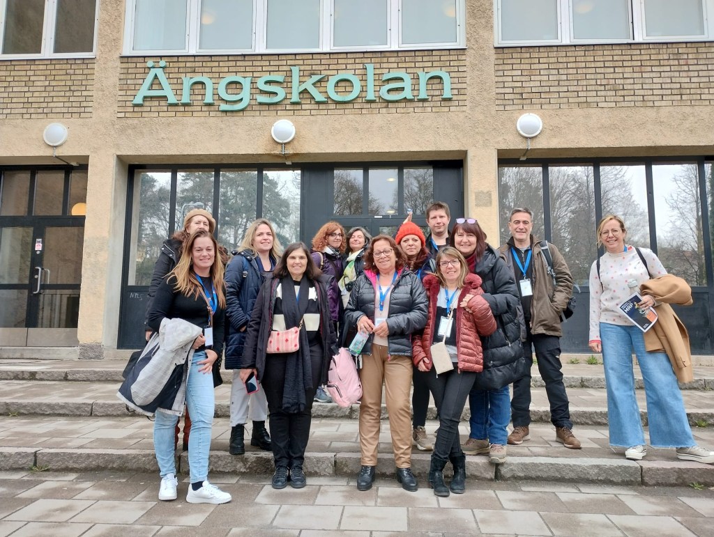 Hoy hemos visitado el centro educativo Angskolan, en Sandyberg, en las afueras de Estocolmo, que tiene alumnos desde Primaria hasta Bachillerato. La educación obligatoria es hasta los 16 años, como en España, pero luego tienen 3 años antes de ir a la universidad, que equivaldrían a nuestro bachillerato y un año más. A pesar de no ser educación obligatoria, sigue siendo gratuita (incluye materiales, ordenadores y comida en el centro), y además les pagan una pequeña cantidad directamente a cada estudiante.