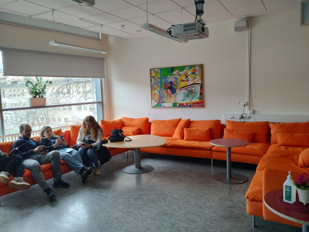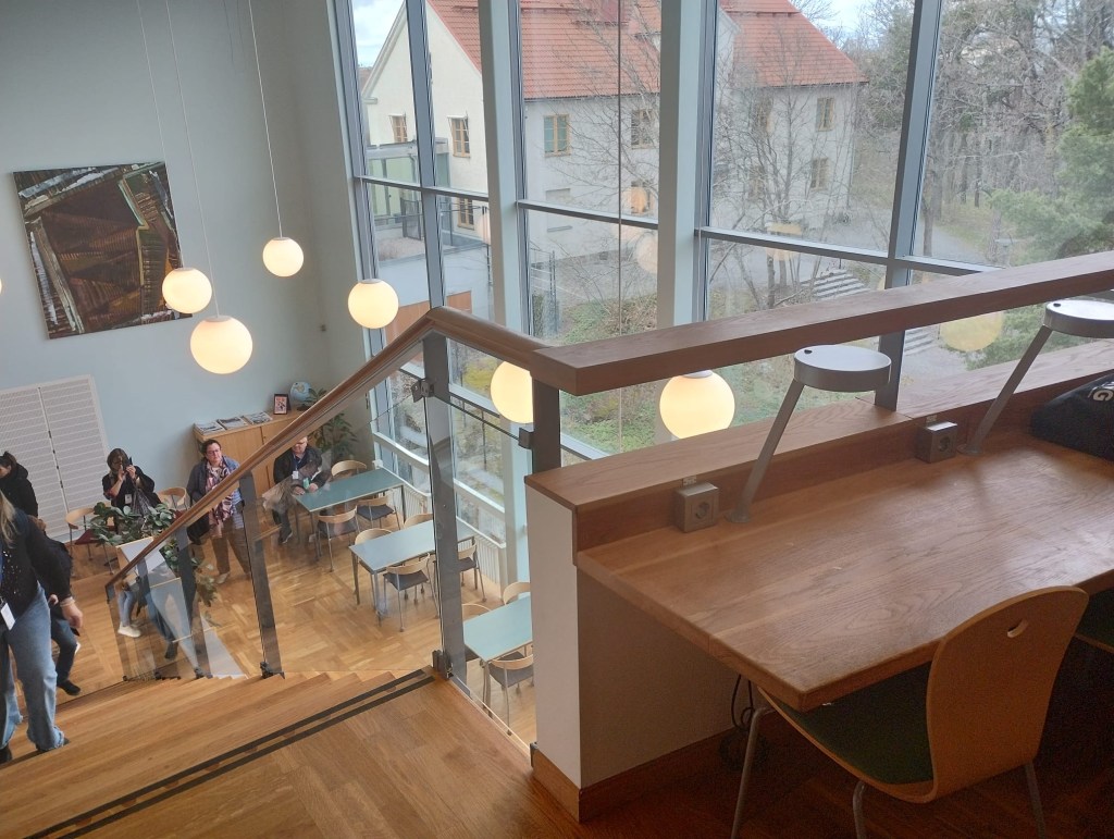 Hoy voy a un Gymnasium, una “upper secondary school”, es decir, un instituto solo de Bachillerato. Se llama Kungsholmens («Los islotes del rey»), y está cerca del centro de la ciudad. Es un edificio moderno, con unas instalaciones impresionantes. Visito una clase de Matemáticas de Sociales del primer año en la que están repasando ¡¡ecuaciones de segundo grado!! Pero no todos los alumnos de la clase lo hacen. La mayoría siguen la clase, pero dos alumnos están con los ordenadores viendo una película, unos cuantos enviando mensajes con los móviles, hay tres alumnas que salen de la clase sin pedir permiso y vuelven al cabo de un rato…, y la profesora, sin mover una ceja, permite que cada uno “siga su ritmo”, como ella misma nos comenta. ¡¡¡Sorprendente!!!.