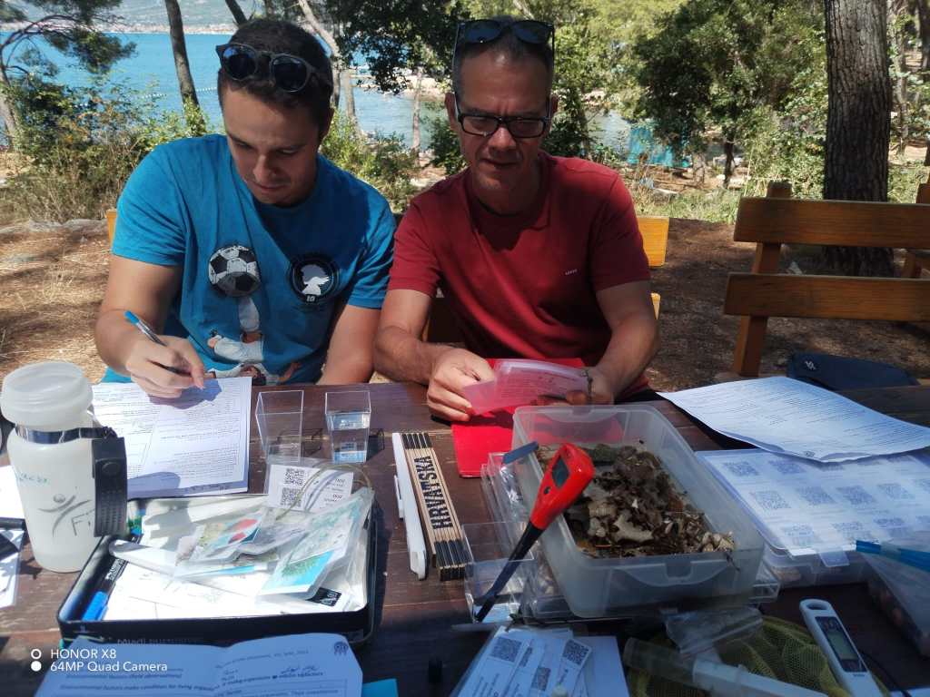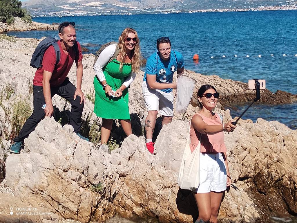 La primera salida la hicimos a el monte Marjan (por otra vertiente distinta a la que yo había visitado el domingo por mi cuenta) y Bene Beach. El entorno natural precioso. Las actividades realizadas interesantes pero no muy novedosas. Medidas de parámetros como el pH del agua a distintos niveles, temperatura del aire suelo y agua, cantidades de algunas sustancias químicas de interés en el agua de mar, cloruros, nitratos, etc. El instrumental usado muy básico, lo cuál es bueno porque al final se trata de hacer cosas que pudas reproducir con tus alumnos. En todo el grupo, el único que era profesor de física y química era yo, por lo que imagino que para los demás sí fue más enriquecedor desde el punto de vista de las actividades y el material usado. En cuanto a las técnicas de muestreo, igual que me resulto interesante, también tengo que decir que me quedé con dudas en cuando a la efectividad de lo que se proponía. En la pequeña discusión algo aprendimos, a pesar de que el inglés de la monitora (nos decía que tenía un A2 y que además no había doemido bien la noche anterior) no era demadiado bueno. Para ser justo habría que añadir que Vesna, así se llamaba la monitora, todo lo equilibró a base de entusiasmo y simpatía.