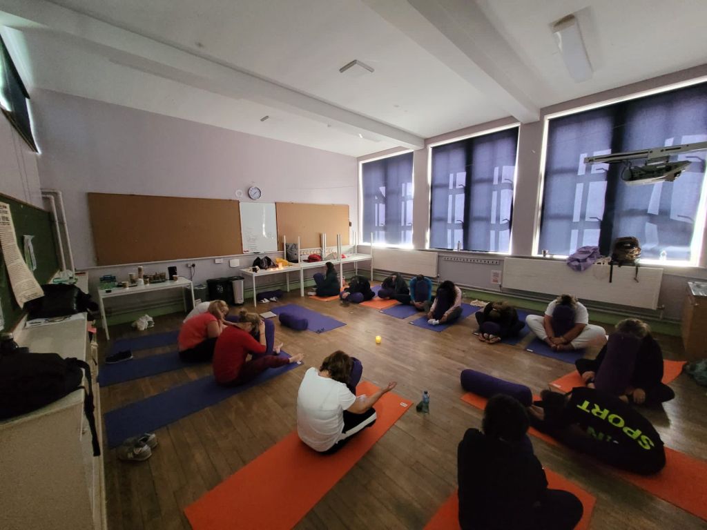 Segundo día de curso y el progreso es increíble. La profesora consigue mantenernos enganchados durante toda la mañana. Hoy hemos comenzado con un calentamiento previo a la sesión principal de yoga en el césped al sol. Las figuras que ayer conseguimos practicar hoy han salido con total fluidez. Nos ha felicitado y en clase hemos expresado la sensación de este progreso de forma individual. Todos hemos coincidido en el grado de satisfacción personal. Hemos terminado el día con una sesión de Yin – yoga (meditación basada en el equilibrio entre la relajación y mantener el esfuerzo de los estiramientos). Ha sido regenerador y hemos terminado dando las gracias por la jornada de hoy.