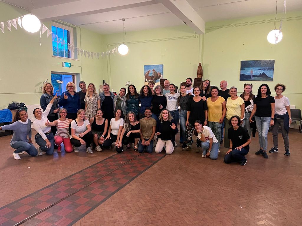 Comenzamos con nuestro calentamiento rutinario en el césped al aire libre, conectando mente y cuerpo a través de técnicas de respiración y ejercicios de estiramientos y movilidad. Tras ello, realizamos una progresión de figuras que implican más esfuerzo físico, para tener la sensación de superación. Ya en el aula, hemos recibido una sesión muy dinámica de cómo enseñar el contenido a adolescentes, y ha sido muy productivo y con ideas muy creativas por parte de todos.