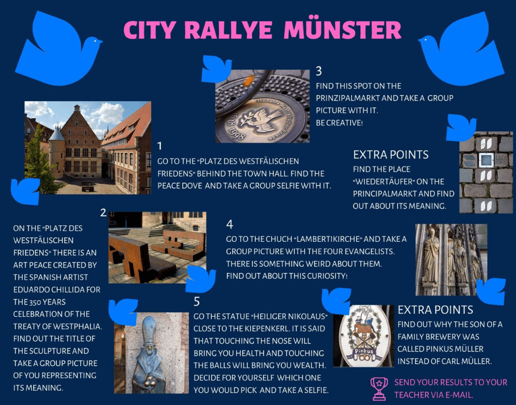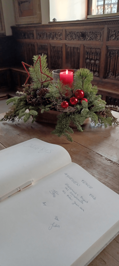 A continuación, y enlazando con el proyecto, visitamos la ciudad y en concreto su ayuntamiento donde se firmó el Tratado de Paz que finalizó la guerra de los 30 años. Las negocionaciones de paz tuvieron lugar en las ciudades alemanas de Ösnabruck y Münster.