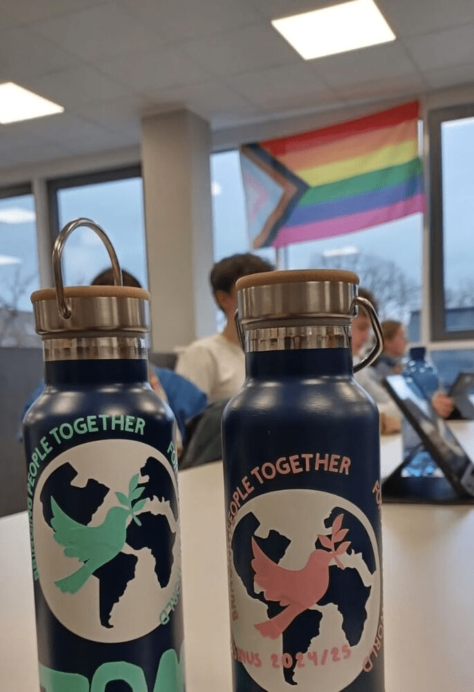 Además, durante una clase de impresión 3D, los alumnos diseñaron sus propios símbolos de la paz y los imprimieron en botellas reciclables, utilizando el logo de nuestro proyecto como parte de su difusión.