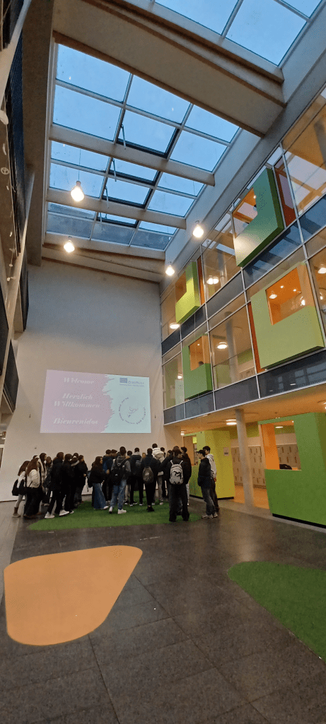 Al día siguiente, realizamos nuestra primera visita al instituto IGS Osnabrück. En las afueras de la ciudad con unas instalaciones modernas tras una reciente reforma, Los alumnos alemanes fueron excelentes anfitriones y mostraron los diferentes espacios del instituto. A lo largo de la mañana se llevaron a cabo actividades lúdicas con el objetivo de romper el hielo y conocernos mejor unos a otros. Los profesores alemanes realizaron la presentación del proyecto : Bringing people together for a better world, donde el concepto de “paz” es el hilo conductor del mismo.
